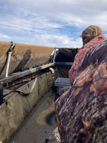 I hunt out of a 21' Banks Goliath for large parties, open water.